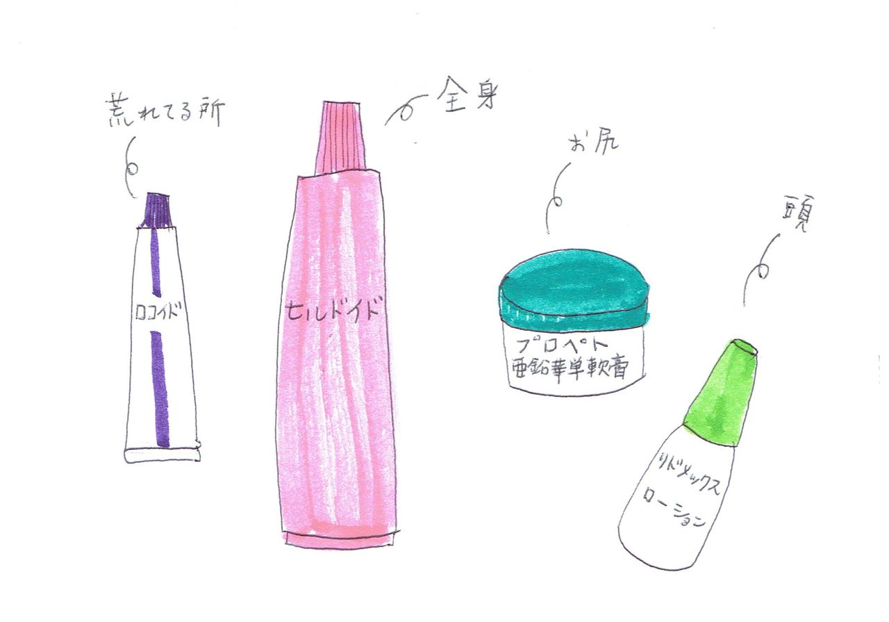 脂漏性湿疹は、最初は頭皮が赤くなって、それがだんだん黄色くジュクジュクしてきて、最後はカサブタになってポロリと落ちる。