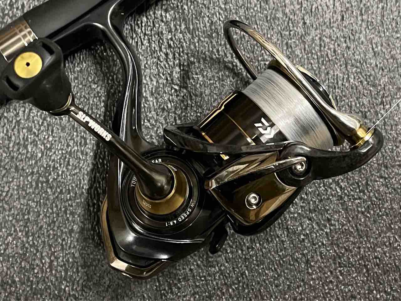 他の持っているリールと比較するとローターが重いみたいで巻き始めが重いです。エリアトラウトだとマイナス要素が大きい。弄っていますが、ローターの重さの影響が大きくてレスポンスが悪いです。エリアトラウト用に現在入手する意味は無いと思う。これなら19ヴァンキッシュの方が向いている。