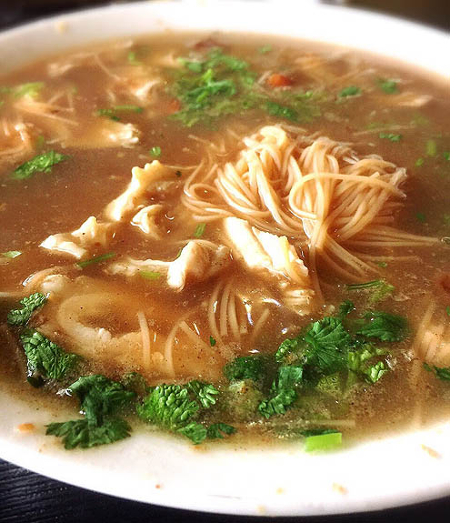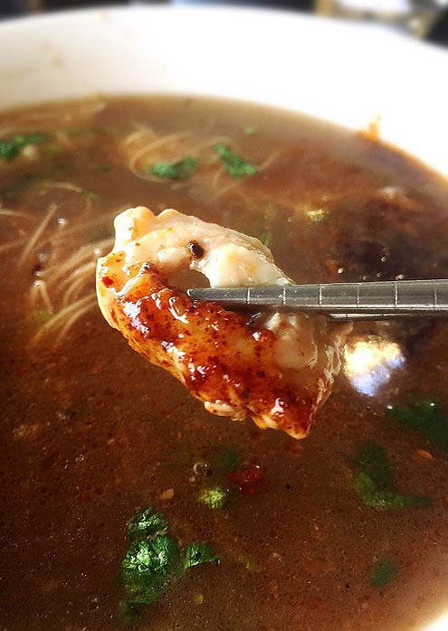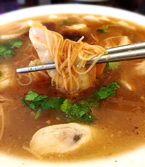 オイスターヌードルが食べたくなって何度も来店を試みてた。ランチそろそろ終わる時間帯にいったのでお客さんわっちひとりになって、おばちゃんが牡蠣は海の汚染の関係でもう入ってこないよおちゅうんで仕方なく、大腸腺麺のほうを注文。