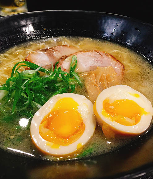 黒豚骨は見た目よりも全然薄味でハンズダウン。なのに連れは替え玉を細麺ではなくわっちの柚子塩につかわれている普通のちぢれ麺でお願いしてた。マニア~。