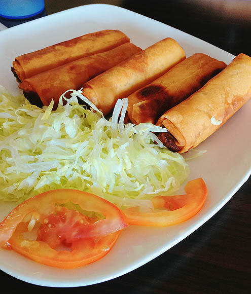 春巻きも頼んじゃえ。5ドルオフになるしな。なんだあ、サンチェみたいな青菜に巻いてナマスのような甘い酢とフィッシュソースにつけて食べるやつじゃなかったので出てきた瞬間にあ~あ、なんだあってため息混じり。