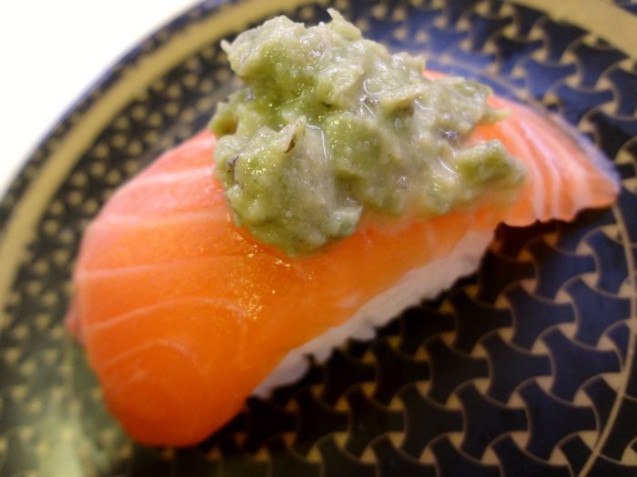 今回は前回と違いノーマルのタスマニアサーモンにワサビがのりました。