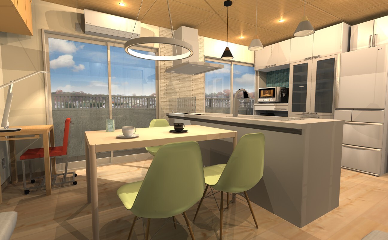 団地リノベながらアイランドキッチンのLDKの雰囲気も感じられることなど」と語る、フリーランスインテリアコーディネーターでCGデザイナーでもある佐藤 建一 様の応募作品です。