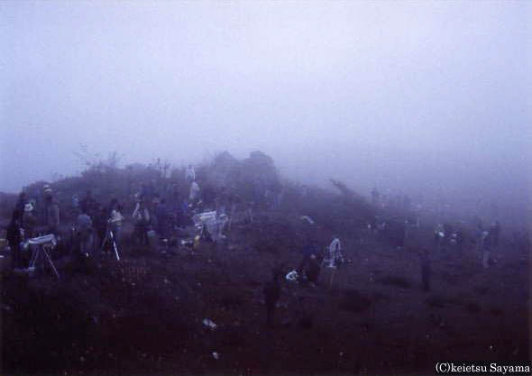 バスで港の反対側に向かい、西に沈む場所で観測します。日食が始まる一時間前に到着。早速観測機材を立ち上げます。15時33分に太陽の下側から欠け始めました。15時40分に食分10%の太陽を撮影、15時50分に食分20%の太陽が雲越しに見えましたが、撮影のタイミングが難しくて撮れなかったです。その後、撮影ポイントである崖の斜面下側から厚い雲が迫ってきました。ものの10分もすると辺りは完全に雲に覆われて、二度と欠けた太陽は顔を見せてくれませんでした。