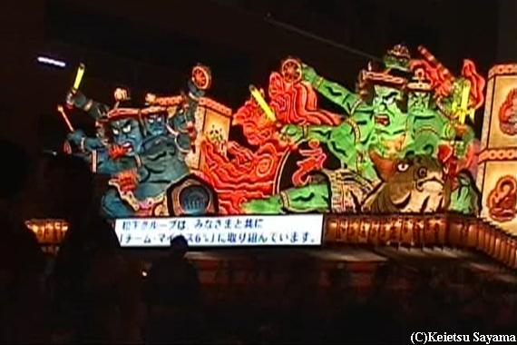 青森パナソニックねぶた会青森パナソニックねぶた会昨年の8月5日に青森市八甲通りで撮影した、青森パナソニックねぶた会の様子を御覧下さい。ねぶた師は千葉 作龍さんです。画題は、五大明王曼荼羅です。 青森パナソニックねぶた会・ねぶた師 千葉 作龍青森パナソニックねぶた会五大明王曼荼羅・表五大明王曼荼羅・裏