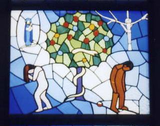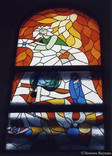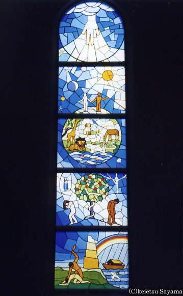 ステンドグラス1カトリック弘前教会は、明治43年に建てられました。構造は尖塔のあるロマネスク様式で、設計はオージェ神父。横山常吉の施工により建てられました。青森県の重要文化財に指定されています。カトリック主義の教会で、内観のステンドグラスの美しさには感動します。隣にカトリック幼稚園があり、子供達のにぎやかな声が絶えません。†駐車場/15台 †ライトアップ有 †入場料/無料 †内観撮影可能†見学時間/館内10:00~15:00/外観撮影自由 †休館日/日曜日午前中(礼拝)・祝日†住所 弘前市百石町小路20 Tel 0172-33-0175 カトリック弘前教会正面創造のみわざ神はすべての創り主神に象って創られた人間の素晴らしさ・宇宙すべての人間の弱さ欲望は分裂のもとアブラハムと3つの契約モーセとイスラエル民族の解放預言者のメッセージ悔い改め…以降、かなり長くなるので続きは明日にします。