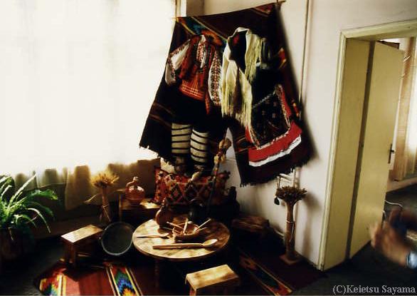 ブルガリアの民族衣装ブルガリア・VARNA空港モスクワからブルガリア北東部のバルナ空港に降り、1999年8月に見られる皆既日食帯にあるユーリガガ-リン農業専門学校に行きました。日本語が出来るガイドさんが、ブルガリアの民族衣装を説明してくれています。ブルガリア民族衣装