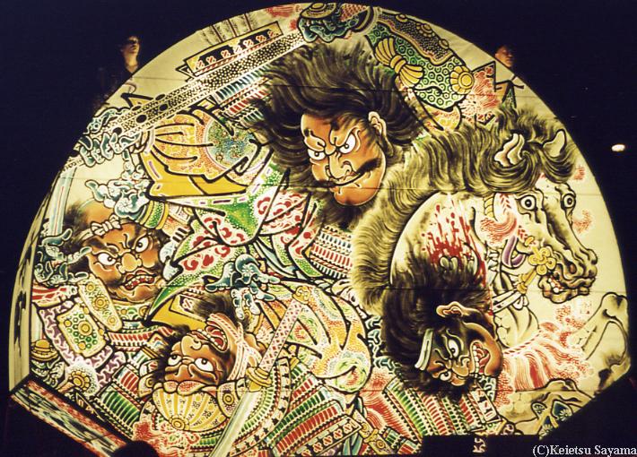 土手町ねぷた土手町商店街振興組合連合会2007年に運行された土手町商店街振興組合連合会ねぷたです。土手町は下土手町・中土手町・上土手町が連合して運行されています。住所は全て土手町で表記されるのですが、市民の地名では土手町が三つあることになります。これと同じような町名が新町です。土手町商店街振興組合連合会・絵師 三浦 呑龍土手町商店街振興組合連合会(町印)平将門(鏡絵)滝夜叉姫(見送り絵)