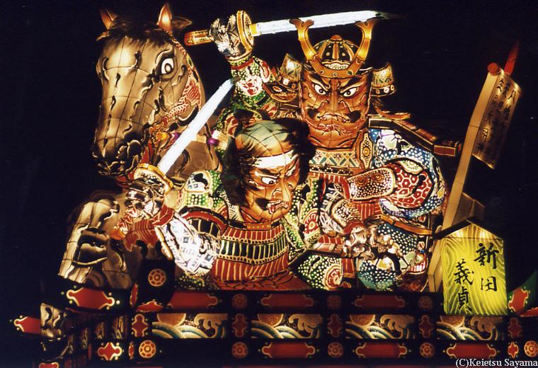 下新町ねぷた愛好会下新町ねぷた愛好会下新町ねぷた愛好会の組ねぷたです。絵師は木村 邦仙さん。2007年に初めて組ねぷたを担当したそうです。この下新町は新町と言う地名ですが、これも土手町と同様に上・中・下があります。下新町は誓願寺がある町会で、南側の中・上新町とは別に独自にねぷたを運行しています。下新町ねぷた愛好会・絵師 木村 邦仙下新町ねぷた愛好会(町印)…同町会の誓願寺を模したもの担ぎねぷた新田義貞(鏡絵)若き日の義貞(見送り絵)