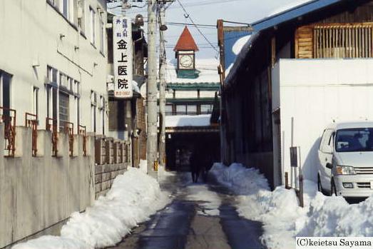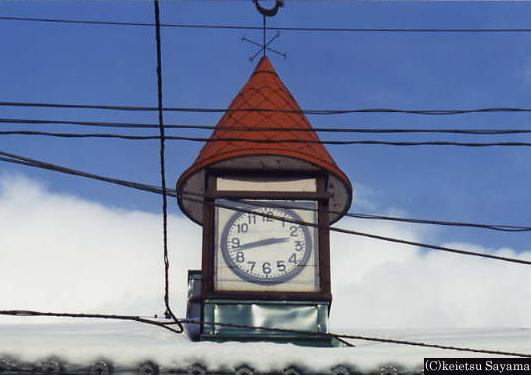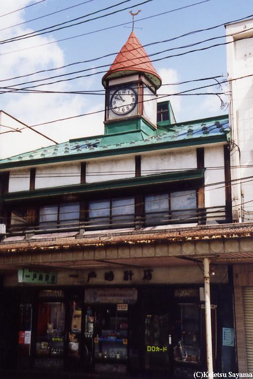 一見して普通の店ですが、店の上部には明治時代から今も変わらぬ時を刻む洋風建築の時計台があります。明治30年頃に三原堂弘前支店の宣伝やシンボルとして造られたと言われています。大正9年以降は、一戸時計店の時計台として市民に親しまれています。土手町中心部にあったかくは宮川や一戸時計店の向かいにあった奥太履物店と花邑などが更地になった今、明治時代の弘前を伝える古き良き貴重な建築文化遺産です。