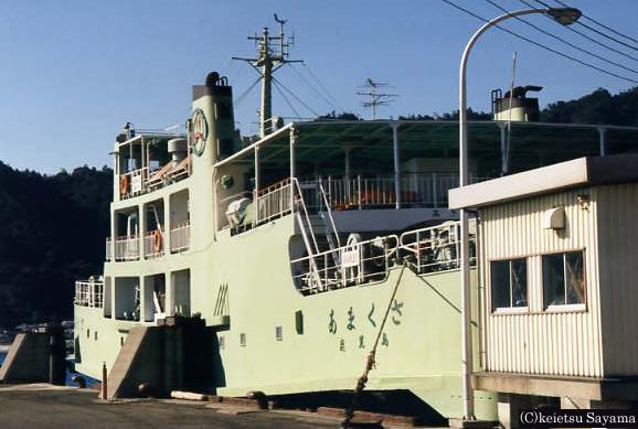 熊本・天草諸島1995年の年末、一文字だけの郵便局を求めて熊本の天草まで船旅をしたことがあります。旅のルートは、不知火海横断フェリーで芦北・佐敷港 から 龍ヶ岳・大道港(不知火海横断、所要約45分)まで行きました。その後、龍ヶ岳町から郵便局のある倉岳町までタクシーに乗り“浦郵便局”へ。待たせていたタクシーに乗って大矢野町からバスで三角まで行きました。今は町村合併によって上天草市と天草市だけになっていますが、地名は当時の町名で書いています。天草諸島の地図あまくさ丸船のデッキから天草諸島を眺める浦郵便局