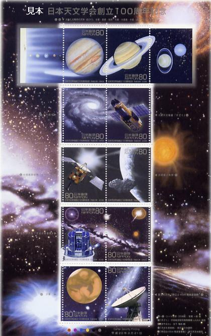 日本天文学会は、明治41(1908)年1月に創立され、わが国や世界の天文学の展開を支え、天文学の社会への普及に寄与しています。今回、その100周年を記念して切手を発行します。