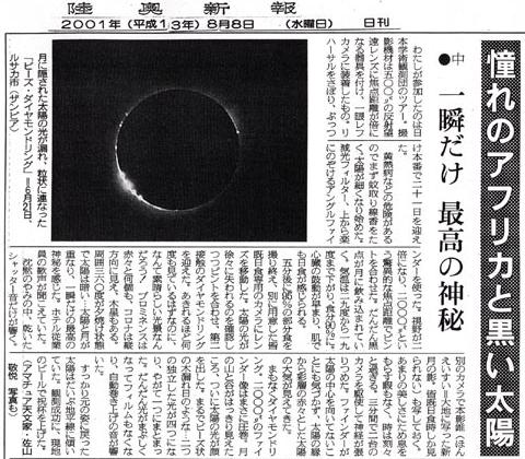 連載の新聞とブログの表紙は同じ写真ですが、ほとんどブレがありません。シャッタースピードを早くすると、日周運動によって地球の自転と共に移動する天体も止まったまま撮影出来るので皆既日食の撮影は三脚固定撮影でも可能なのです。つまり初心者でも撮影できる天体とも言えます。