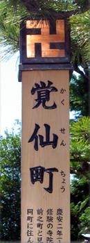 一般住宅が工事中だった3年ほど前、工事の邪魔になるとのことで覚仙町の標柱が一時的に撤去されていました。標柱跡が地面にクッキリと残っていたのですが、昨年同じところに行ったら標柱が復活していました。以前の標柱はこんな感じです