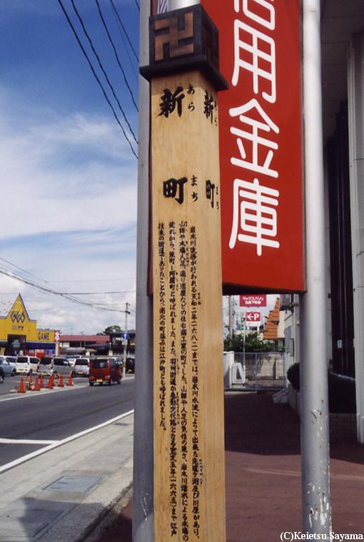 岩木川改修が行われる天和二年(一六八二)までは、岩木川水流によって出来た先達ヶ淵及び川原があり、山師や木場人足、造り酒屋などの住む商工業の町でした。山師や人足の気性の荒さ岩木川増水による木場の荒れから、荒町ー阿羅町と呼ばれました。また、羽州街道か参勤交代路となる寛文五年(一六六五)までは江戸往来の街道であったことから、南北の町並みは江戸町とも呼ばれました。