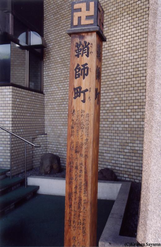築城当初には寺町の一画をでしたが、元禄九年(一六九六)の町割帳では、鞘師町と改名されており、既に城の南側(現在の上白銀町)から移住していたことがわかります。後に南通りを上鞘師町、北通りを下鞘師町と呼称し、現在に至ります。
