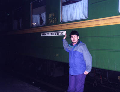 AM3:00頃に満点の星が輝く無人駅へ到着しました。シルカはチタよりも寒く感じます。ツアーがチャーターしたバスは暖房が効かず、身体を震わせながら宿泊地のシバンダ静養サナトリウムに行きます。途中、完全に凍った川の上で停車。駅前にあった電灯がここでは一つも見当たりません。全員バスから下車して運転手がライトを消した時、辺りは完全な闇に包まれました。見上げると満天の星が輝い て銀河の傾きまで見えます。へール・ボップ彗星が見頃だったので観測します。約30分観測して身体も冷えた頃、全員バスに乗って宿泊地へ。