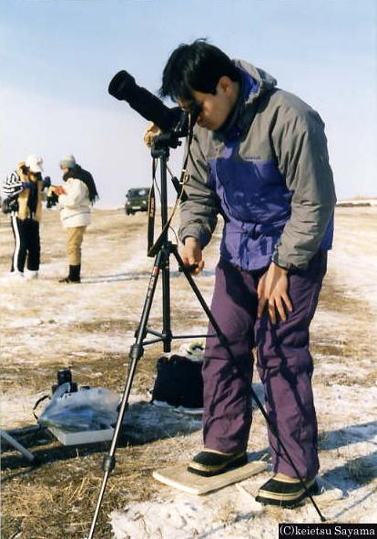 機材は荒野に設置したまま。風が吹かないので助かりましたが、カメラを保温しようとしたらカイロ灰をくっつけたガムテープがあまりの寒さに付きません>_< 貰い物のカイロを付けると良く付きます。これにはジャンパーをかけて保温しました。赤道儀がないので、カメラと三脚が二台ずつの固定撮影です。一台目は部分日食を、二台目は皆既日食だけを撮ります。部分日食は10分おきに撮影していたので、その間はテントで暖をとります。撮影の合間も手足が冷えるので、手はテントの暖房によくあたって足は三脚の下に発泡スチロールを敷いて荒野の寒さをシャットアウトします。あまりに寒いせいか、現地でよく飲まれているウォッカをがぶ飲みして「人間ストーブだ!」と言う方もいます。