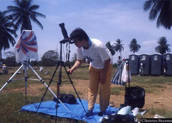 彼女は1988.3.18インドネシア皆既日食から曇られた事がないと言う方なのです。私も同じ日に小笠原沖皆既日食以来曇られた事が無いので、これは御利益があるのかな?1995.10.24タイ皆既日食の翌日にも偶然バンコクのシルク売り場で再会して以来の出会いです。昨年彼女はモンゴルに行って初めて曇られたようです。その時、私はシベリアの荒野で地平線まで晴れわたる完璧な青空の下で観測していました。