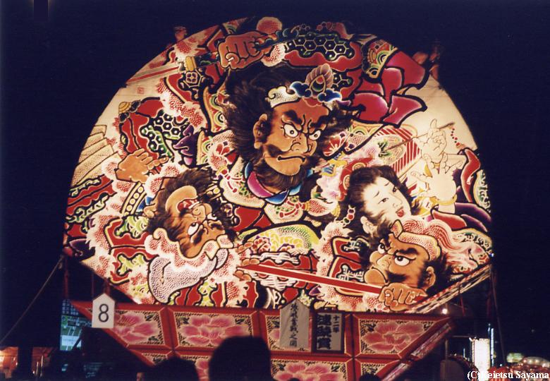 弘前航空電子弘前航空電子(町印)張飛奮戦之図(鏡絵) 絵師 後藤 信昭祝融美人(見送り絵) 絵師 後藤 信昭弘前航空電子2006年8月1日に、弘前市中土手町で撮影した弘前航空電子のねぷたです。ここは、毎年奇数日に運行されます。2002年8月1日に私も参加しました。航空電子の社員または契約社員ですと、タダで参加出来ます。大人の参加者は手ぶらで帰ることになりますが、子供ならお菓子や飲みものを運行終了後に配ってくれます。ウチに子供がいるはんで…と言ってお土産を手にするのもアリです♪女性がお菓子をもらいに行った方が、もらえる確率が高いです。