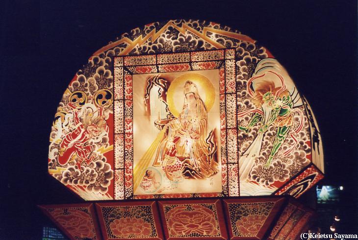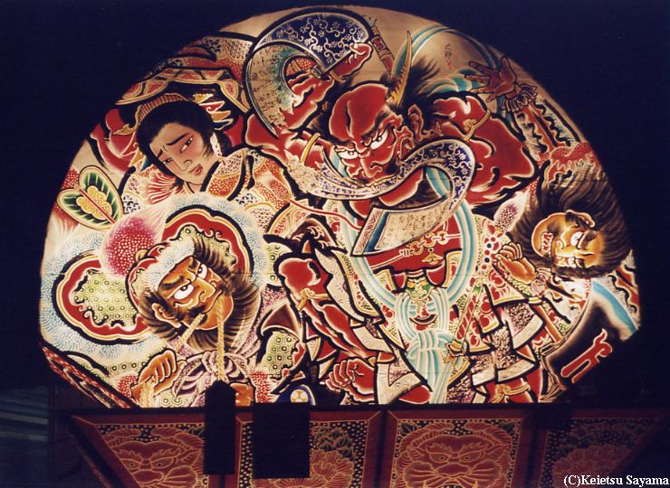 鬼沢ねぷた同好会鬼沢ねぷた同好会(町印)天魔波旬(鏡絵) 絵師 佐藤 大節慈母観音(見送り絵) 絵師 佐藤 大節鬼沢ねぷた同好会2006年8月1日に、弘前市中土手町で撮影した鬼沢ねぷた同好会のねぷたです。この鬼沢と言う地区は、節分の時に鬼は内・福は内と言って鬼を迎えるので有名です。昔、飢饉があった時、鬼が田畑を耕してくれて飢えを凌ぐことが出来たので、それ以来鬼を奉るようになったそうです。その鬼神社には、鬼が田畑を耕した時に使われたと言われる鍬が奉られています。