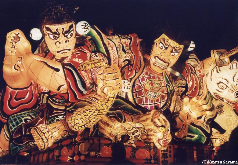 西地区ねぷた親交会西地区ねぷた親交会(町印)南総里見八犬伝 怪猫赤岩一角を討つ(鏡絵) 絵師 小山内 暢 長内 雲元南総里見八犬伝 怪猫赤岩一角を討つ・巨大ハリボテ編伏姫(見送り絵) 絵師 小山内 暢 長内 雲元西地区ねぷた親交会2006年8月1日に、弘前市中土手町で撮影した西地区ねぷた親交会の組ねぷたです。絵師は小山内 暢さんと長内 雲元さん。この地区は組ねぷたの部で毎年知事賞を獲得している名門団体です。後ろから巨大なハリボテが出てきます♪