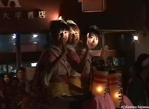 ミス青森ねぶた本日から、2006年8月5日に運行されたねぶたを紹介します。青森市八甲通りで撮影しました。今年の皆既日食・ねぷた・ねぶたは只今編集中です(^^ゞミス青森ねぶたミス青森ねぶた2006年度のミスねぶたに選ばれた3名です。一番左がミスねぶた吉田綾子さん、中央がミスねぶたグランプリ対馬優理子さん、一番右がミスねぶた山内奈津子さん です。