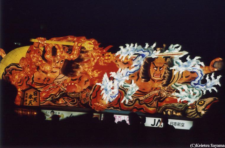 青森山田学園ねぶた大賞・跳人賞・最優秀製作者賞【総合1位】青森山田学園 町印日天 水天 ねぶた師 北村 隆日天 水天・裏絵青森山田学園日天の火と水天の水が上手く表現されたねぷたが評価されて、ねぶた大賞・跳人賞・最優秀製作者賞【総合1位】を獲得した2006年度では一番良いねぶたです♪