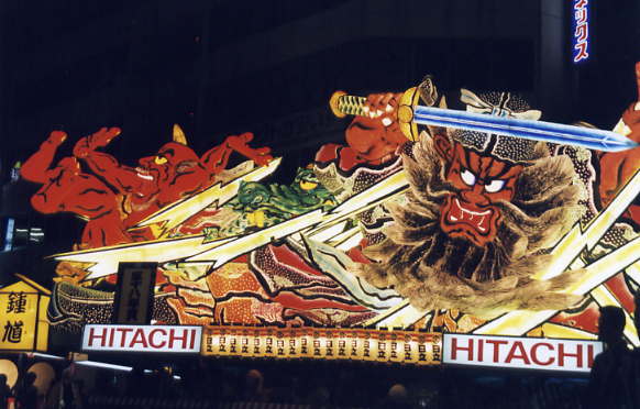 2003年 青森ねぶた 22003年8月5日に運行されたねぶたを紹介します。場所は青森県青森市アスパム近くで撮影しました。青森大学(知事賞)・絵師 北村 隆土岐元貞 猪鼻山魔王投げ倒す土岐元貞 拡大囃し方・太鼓HITACHI鐘馗鐘馗裏絵囃し方・ジャガネ青森県板金工業組合・絵師 北村 蓮明不動と龍王不動と龍王裏絵囃し方・太鼓ダイドードリンコ・絵師 白鳥巌流島囃し方・笛太鼓跳人・踊り手ミスハネト4人衆写真・記事・映像の無断使用禁止