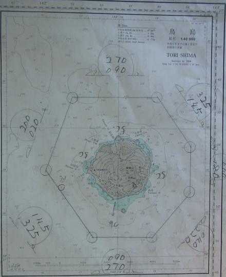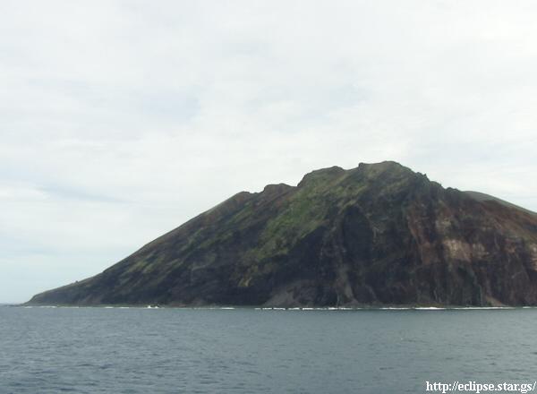 朝6時頃に孀婦岩を周遊したふじ丸は、朝8時過ぎに鳥島へ近づきます。鳥島の北側には、気象庁鳥島気象観測所跡地がありました。まだその残骸も残っています。 1965年5月10日に国の天然記念物保護地域に指定されてからは、一般者は上陸が出来ない島となっています。鳥島には、年数回の学術目的調査で上陸する研究者だけが上陸を許可されています。2042年4月21日の皆既帯は、正午中心食の近くに陸地があるにも関わらず一般の観測者は今回と同様に客船で観測せざるを得ない状況です。 | ![]() |