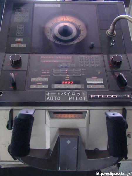 (11)操舵室を見学 今日は、日程の中で唯一操舵室を見学できる日です。これまで操舵室や飛行機のコックピットにも入ったことがないのでどんなシステムで船が運航されているのか楽しみです♪ 右写真のオートパイロットと言うのは、事前にGPSを入力すれば目的地に連れて行ってくれるシステムらしいです。乗組員は普段船の前面を監視すればいいだけですが、まれに衝突する危険性があるのでいつでも手動で操作できるように準備しています。日食の前日に他の客船がふじ丸の前面を通過するニアミス事故がありました。船長は結構怒っていたらしいのですが、これだけ皆既帯に客船が集結することも珍しいので許してやってください(>_<) 操舵室後方にあるテーブルには、日本近海の海図があって職員が手書きで航行した海上航跡図を書いた跡があります。また雲の位置を察知するレーダーや見慣れない機器が多く置いてあって、にわか客船ファンになりそうです。 | ![]() |