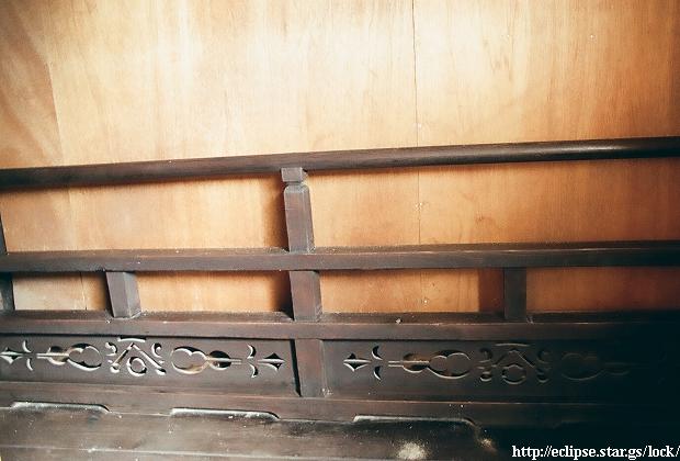 これらは昭和45年に、創業当時にあった欄間を外から見えないように改装しています。このページにある資料写真では、この梁と欄間の写真があります。その写真は私が取り損なったところで、いずれ撮り直しをする予定です。