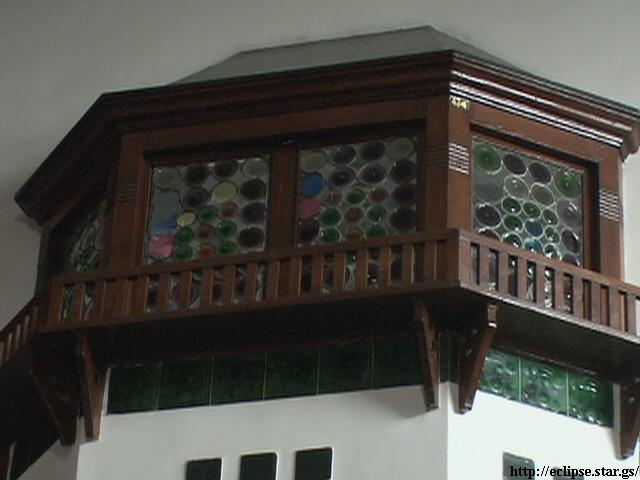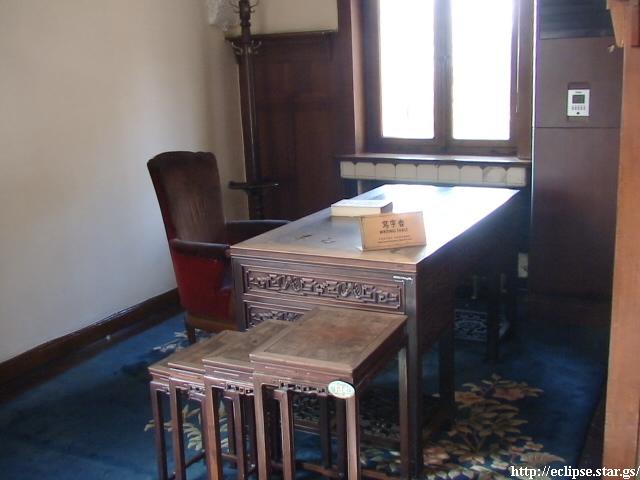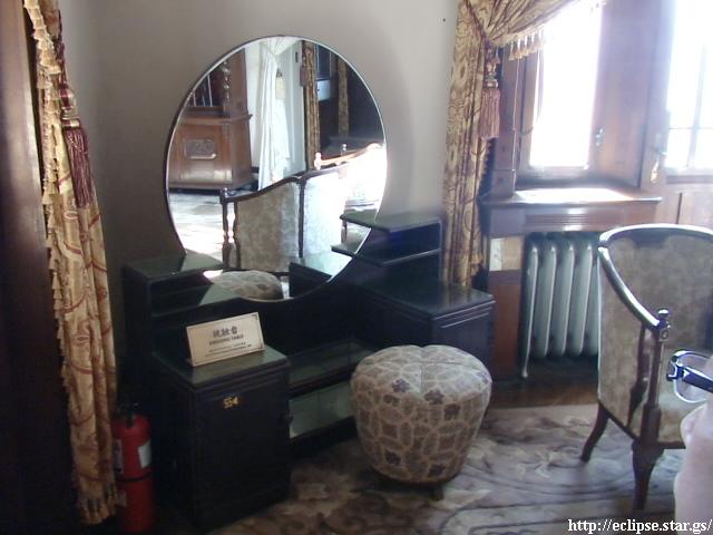 青島日没金環日食・工場編1(14)迎賓館を見学迎賓館は内装が面白かったので、外装は特に撮らなかったです。総統府の書斎や天井のユニークな照明に目が留まりました。殆どの家具がドイツから運ばれてきたものです。ダイニングルームは広く、ふかふかのソファが置いています。外には噴水の設備がありました。中庭は無いのですが、吹き抜けがありました。そこには暖炉や柱時計が置いてあり、漢字でドイツ製と書かれています。同じ場所で韓国人も観光に来ていました。迎賓館の執務室迎賓館の化粧室暖炉の上にあったステンドグラス煙突の上部にあったステンドグラス迎賓館天井のランプ迎賓館天井の宝石ランプ管理者に無断での使用・複製・転載・流用禁止