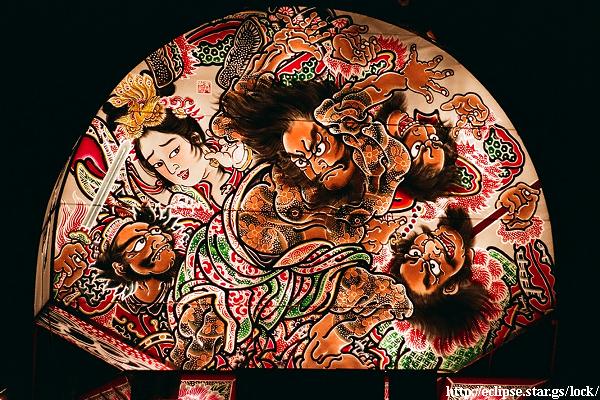 下新町・土手町下新町ねぷた愛好会・絵師 三浦 呑龍弘前商工会議所会頭賞・アイデア賞下新町ねぷた愛好会(町印)…同町会の誓願寺を模したもの水滸伝 武松豪腕を奮う(鏡絵)遊女若汐(見送り絵) 土手町・絵師 三浦 呑龍弘前青年会議所理事長賞土手町(町印)渡邉綱と羅生門の鬼(鏡絵)蛇姫(見送り絵)管理者に無断での使用・複製・転載・流用禁止