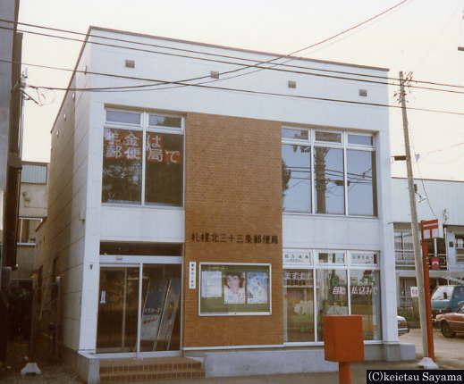札幌北三十三条郵便局札幌北三十三条郵便局札幌北三十三条郵便局証印(主務者印)札幌北三十三条郵便局(局番 90373)〒065-0033北海道札幌市東区北三十三条東1-6-12駐車場なし 電話 011-721-59721961(S36)年12月16日開設。昭和61年7月15日に自転車で訪問札幌北三十三条郵便局周辺地図管理者に無断での使用・複製・転載・流用禁止