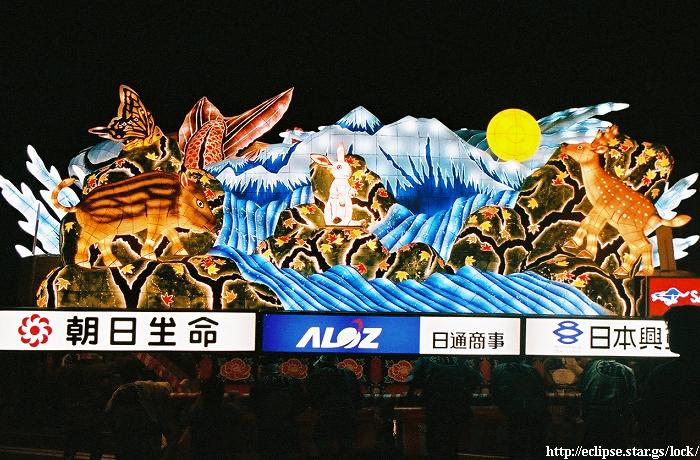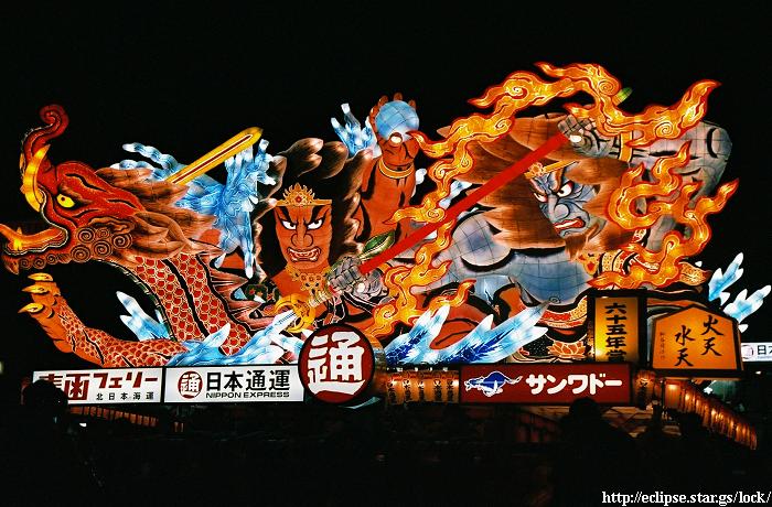 日本通運㈱ねぶた実行委員会日本通運㈱ねぶた実行委員会・ねぶた師 柳谷 優浩火天とは、火を神格化したものであり、仙人の姿をしており、仏教における天部の一人で、十二天の一人となっている。水天も、また、仏教における天部の一人である。神仏習合により、安産・子育ての神とされ、子供の守り神として信仰されるようになった。火と水はかけがえのないもの。均衡が保たれた穏やかな自然の下で火と水が出会い、心も体も温まる湯が沸く。湯をいただくことによって、火と水の理を知り、地球に感謝し、守られた自然環境を子孫に渡したいものだ。火天 水天火天 水天・送り絵写真・記事の無断使用不可