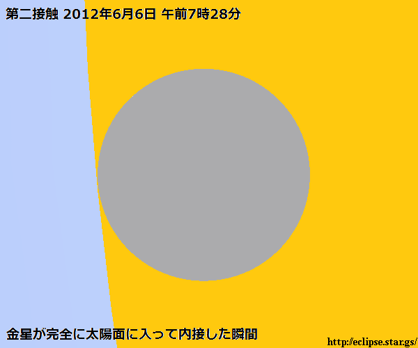 潜入後、太陽と完全に内接するまでが金星の太陽面通過クライマックスと言えます。