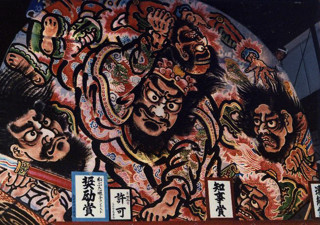 上の2枚の写真が1982年に運行された達温ねぷた。下の写真が1986年に運行された達温ねぷたです。力強い筆が荒々しく描かれているのが達温ねぷたの特徴です。