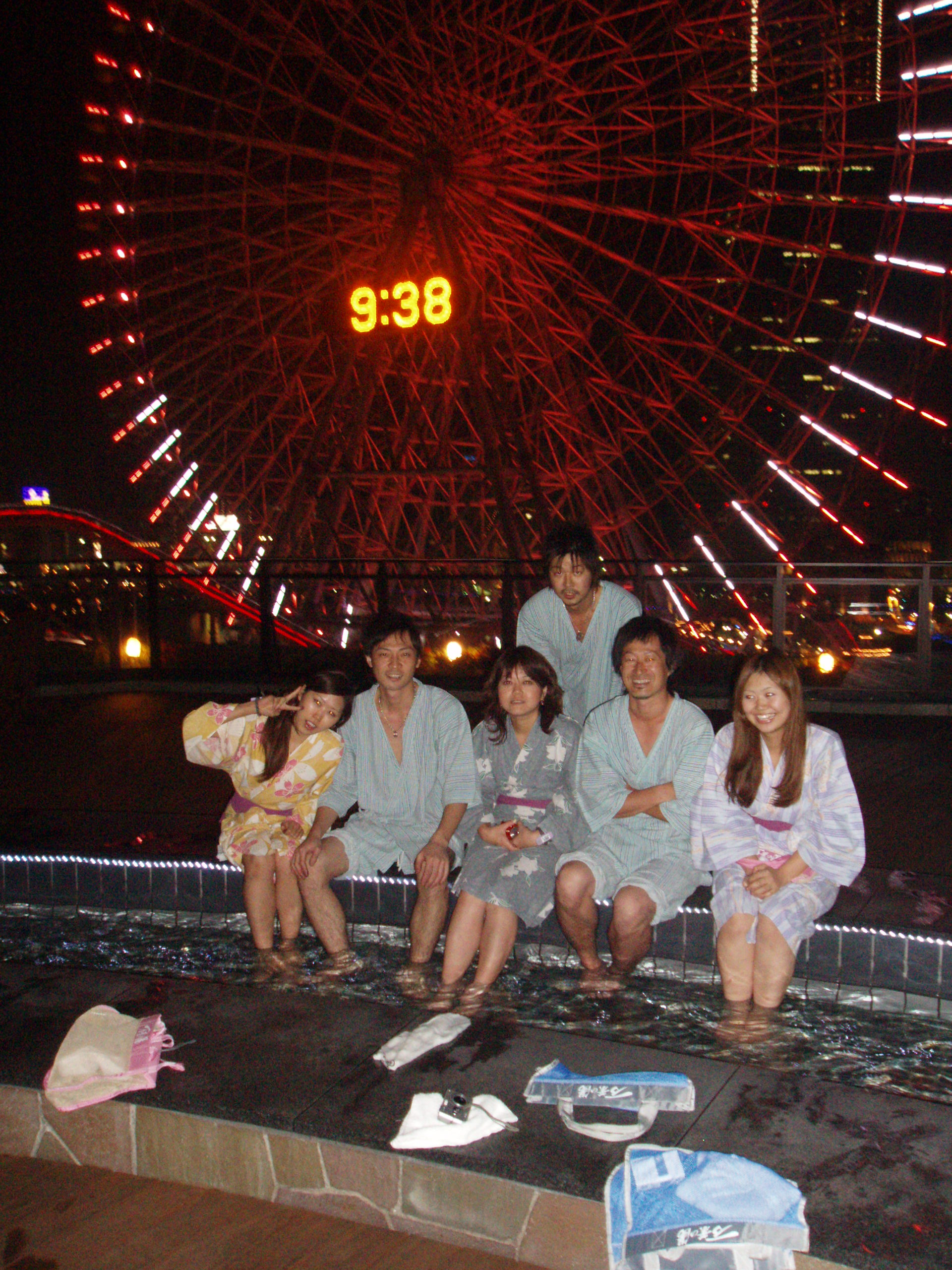 夜出発して、まずは横浜の桜木町にある万葉の湯で
