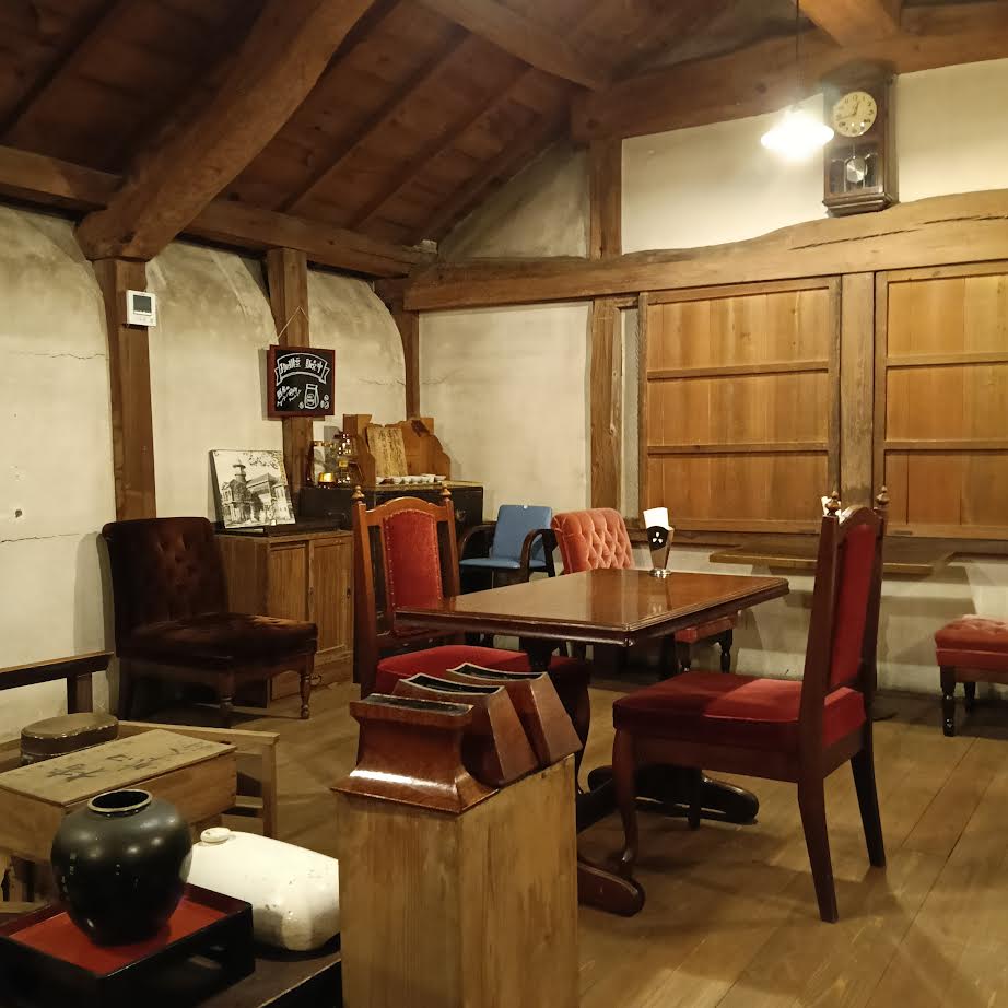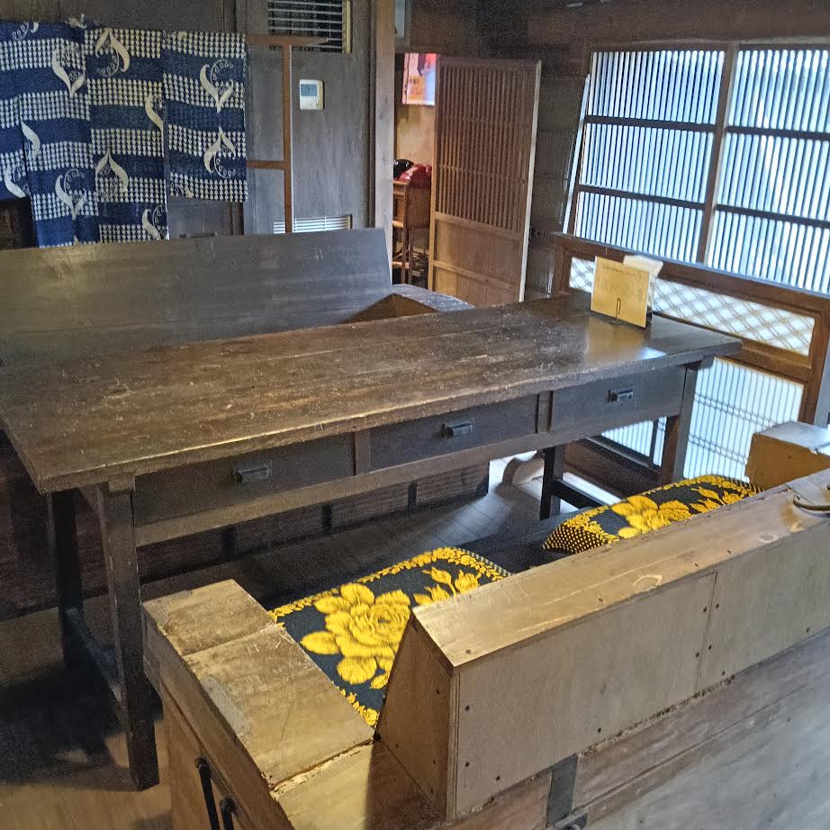 こちらのテーブルもイスも、歴史を感じさせる品々です。