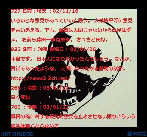 藤田信之「愛情に基づく人間的な対話は、無干渉と無視と正常な応答の拒否とは交わらない行為。直接面と向かって人間的な対話をせず妄想として処理して誤魔化すのは、愛のない行為に思えます。サプライズでの祝福があるかのように装うのは、プライバシーを軽視された待遇を受けている、仲間内の情報ネットワークから外された者に対する情報の隠蔽の正当化の行為ではないでしょうか?」