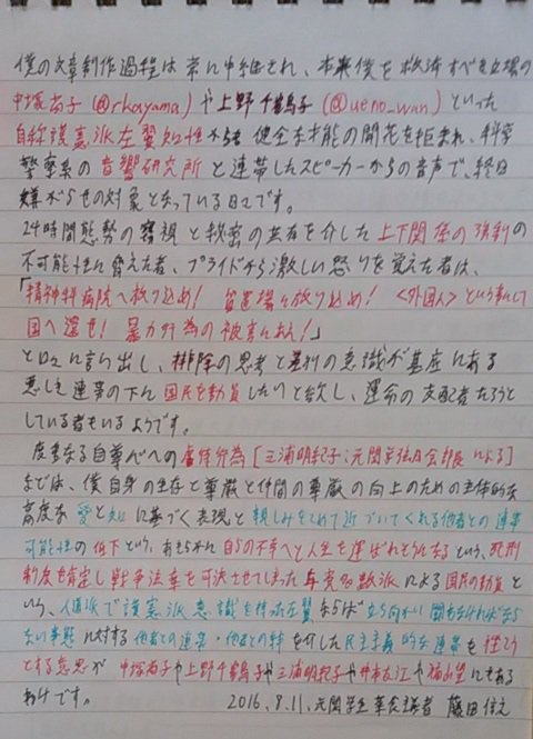 「外患誘致罪や内乱罪を適用し死刑にしてもいい」「たとえ違憲でも妄想として処理できるなら令状なしの家宅捜査や私生活の見世物化をしてもいい」「軽蔑の対象とする喜劇に仕立て上げたい」「つけあがって自爆希望」