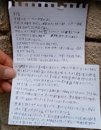 「言葉は、存在の家である。言葉による住まいのうちに、人間は住むのである。思索する者たちと詩作する者たちが、この住まいの番人たちである」