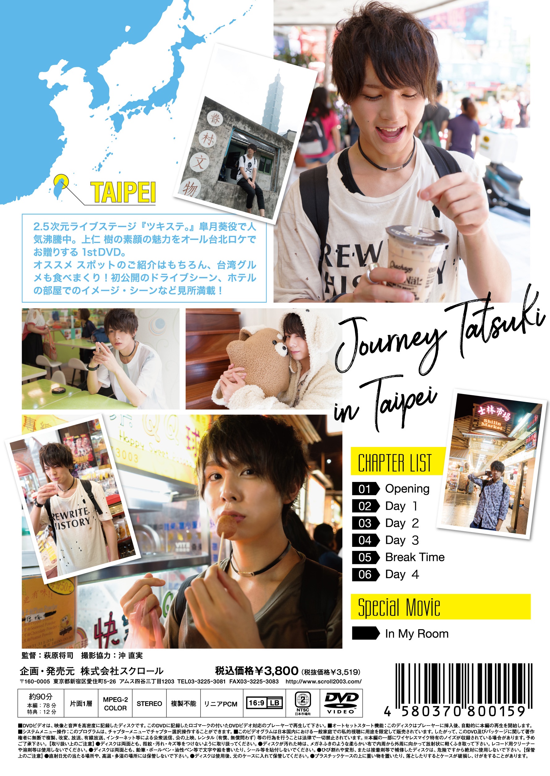 「ツキステ。」皐月 葵役や「B-Project」の王茶利 暉役で活躍中の上仁 樹くん 1st DVD「JOURNEY TATSUKI ~上仁樹 in 台北~」が8月22日(火)にAmazonとMEN'S SCROLLにて発売致します!!
