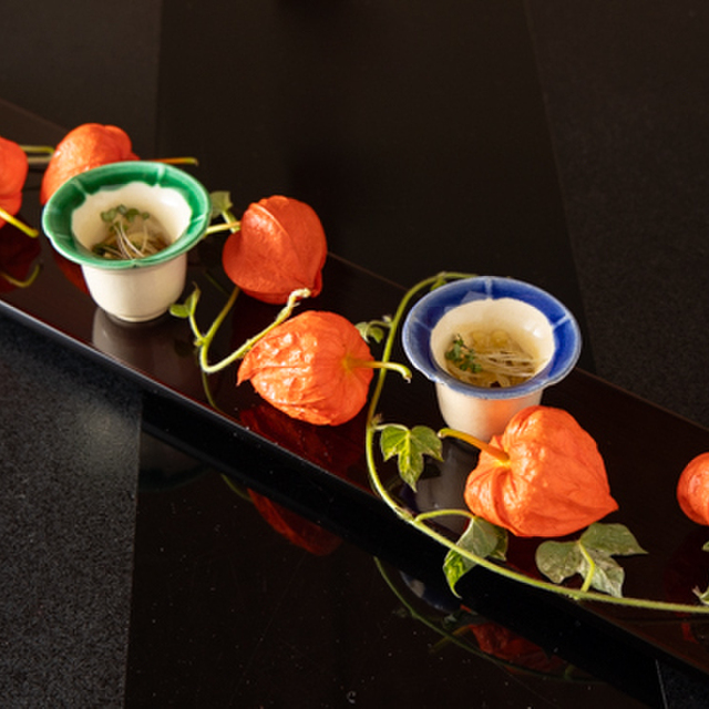 冬瓜とイサキのアラレ揚げ。餡はあご出汁です。