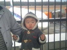パパの会社が空港の近くなので降りかけの大きな飛行機は見たことがあったのですが、とまっている飛行機を更に上から見るなんてことは当然始めてで大興奮の凱。