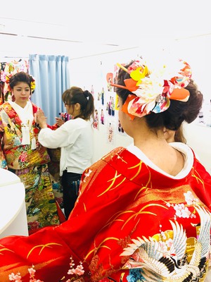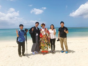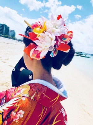 いい天気で青い海に赤い打掛がよく映え、素晴らしい撮影日和でした(о´∀`о)