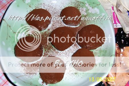 て強火で15分蒸して、少量(数)に参加するオリーブ油はもんで群れを成して、練り粉の表面で少し粟の粉をまいて、粘る力に下げさせて、小さい団に分けて、1粒の[麦提沙のチョコレート]を入れて団子を包んで、表面のにカカオの粉をまいてすぐなります.