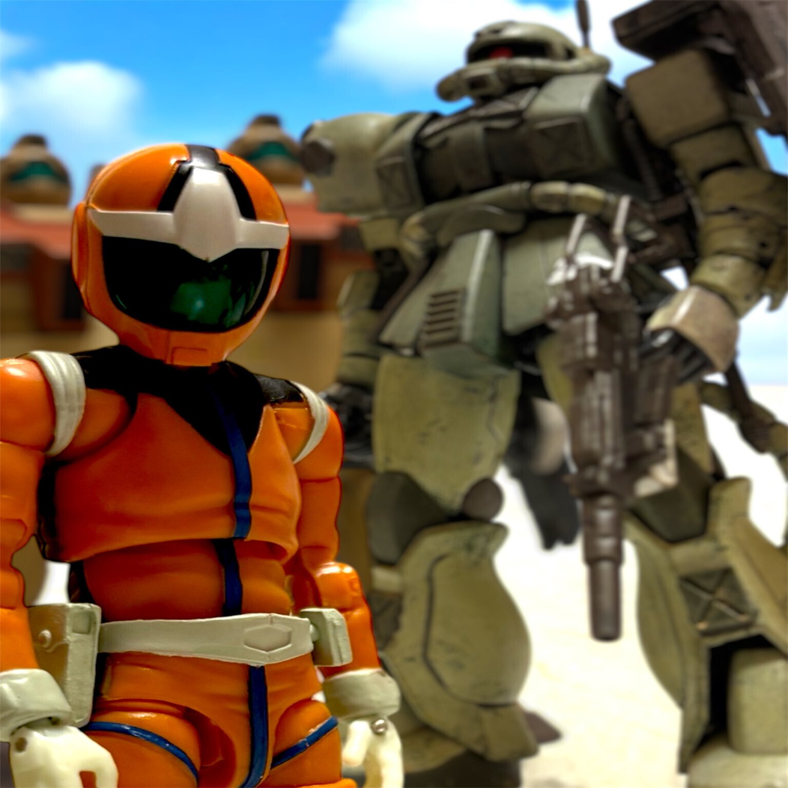 ミヤギがガンキャノンで、ひしゃげたハッチをこじ開けると、オレンジ色のノーマルスーツが転がり出て、砂地に大の字になった。ミヤギも慌ててコクピットを開くと、ヘントに駆け寄って、抱き起こした。