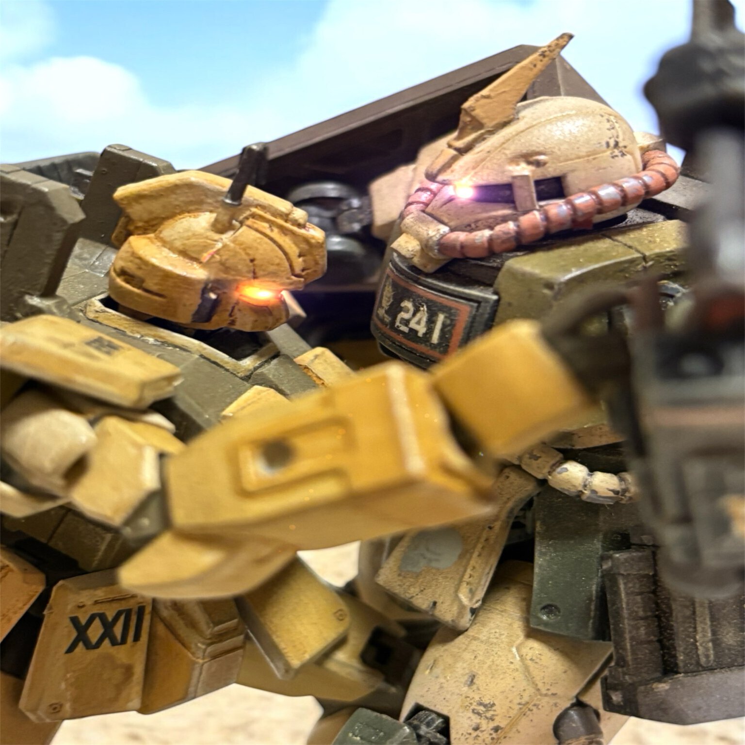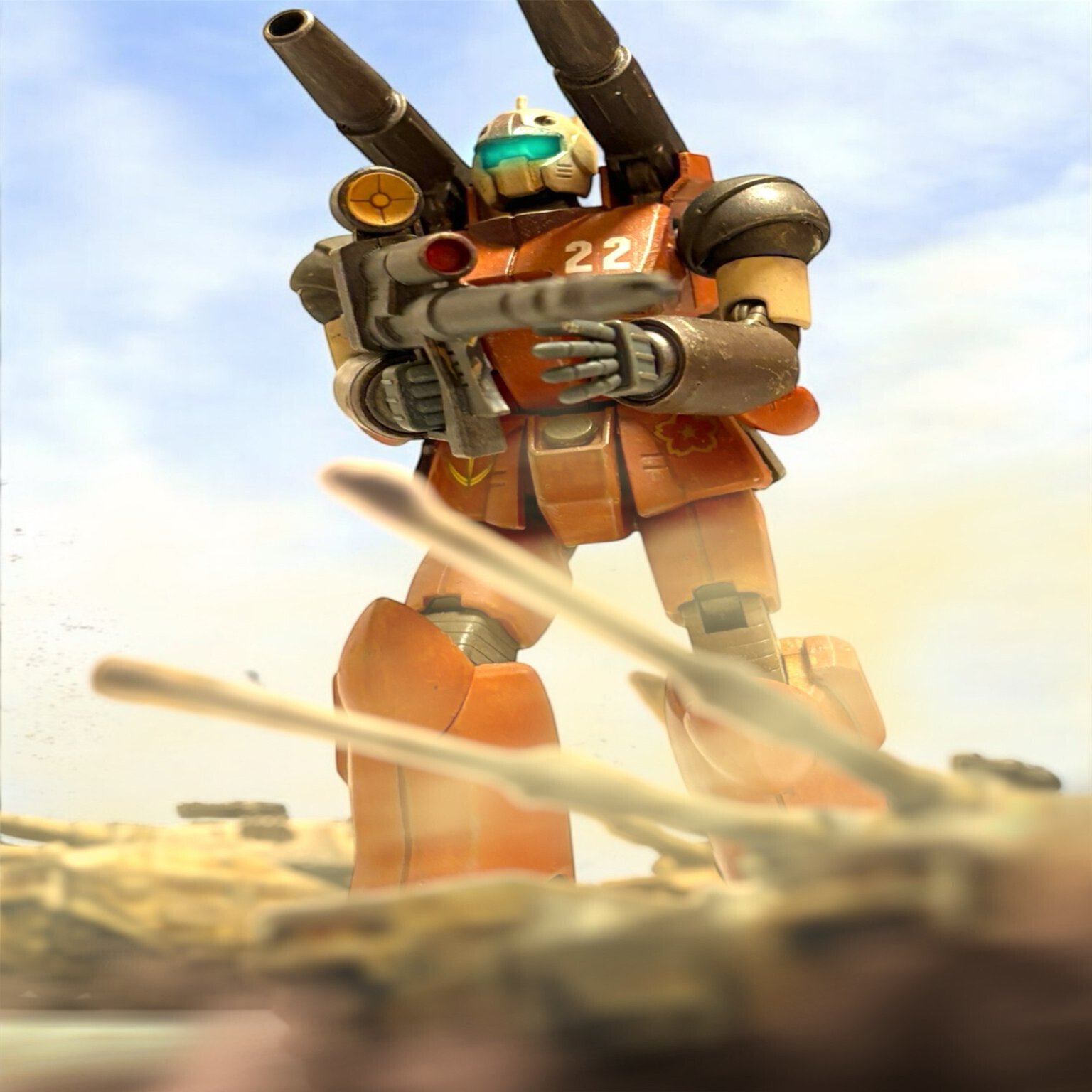 ガンキャノンは、V作戦の最初期ロッドの機体群であるため、ルナ・チタニウムをふんだんに使用した重装甲が特徴だ。加えて、鈍重な見た目の割に推力も高く、軽快な機動性を誇る。そこに”ニュータイプ”と目されるミヤギ曹長がパイロットである。個の戦力だけで戦いの趨勢が決まるわけではないが、ミヤギ曹長の存在はこの旅団が現時点で持つ戦力として、頭一つ抜けていることは間違いない。